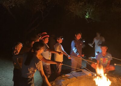 夜にはキャンプファイヤーや野外クッキングを楽しみながら、仲間